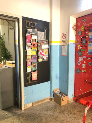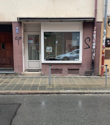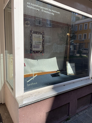 Gegenüber der Gostenhofer Buchhandlung, in deren Schaufenster gibt es einen direkten Einblick in Werke und Projekte von Künster*innen aus dem Heizhaus.